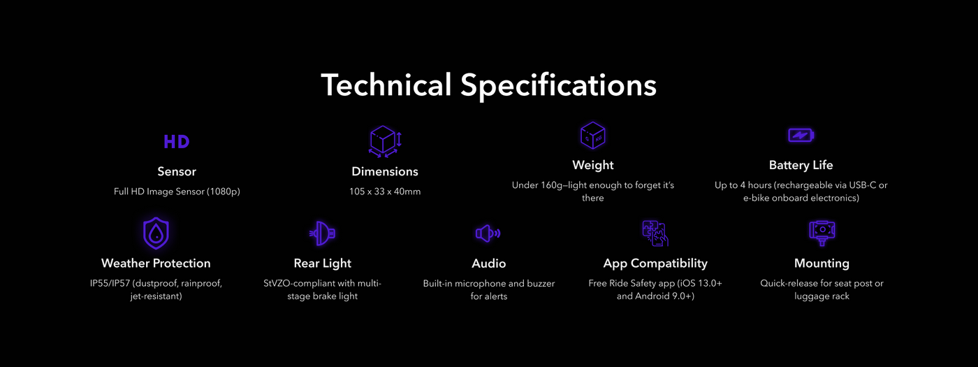 World’s first AI-powered digital rear-view system designed exclusively for cyclists pairs an HD dashcam with state-of-the-art AI to do more than merely record your ride. Advanced AI continuously scans approaching traffic, pinpoints potential threats, and notifies you the instant seconds count. Keep your eyes—and focus—ahead, while it watches your back. RS 1000 is your new visition for cycling safety!