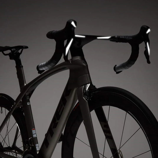 Simplemente agregue las pegatinas reflectantes FRAME FLASH a su bicicleta o casco para que los conductores puedan notar en cualquier entorno.